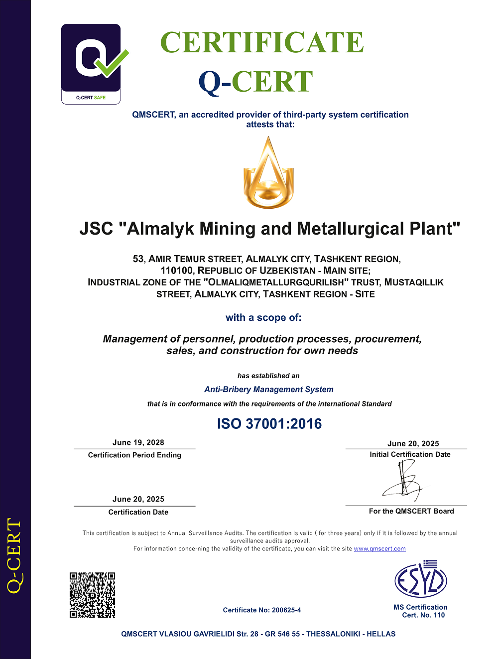 Almalyk Mining and Metallurgical Complex Joint Stock Company