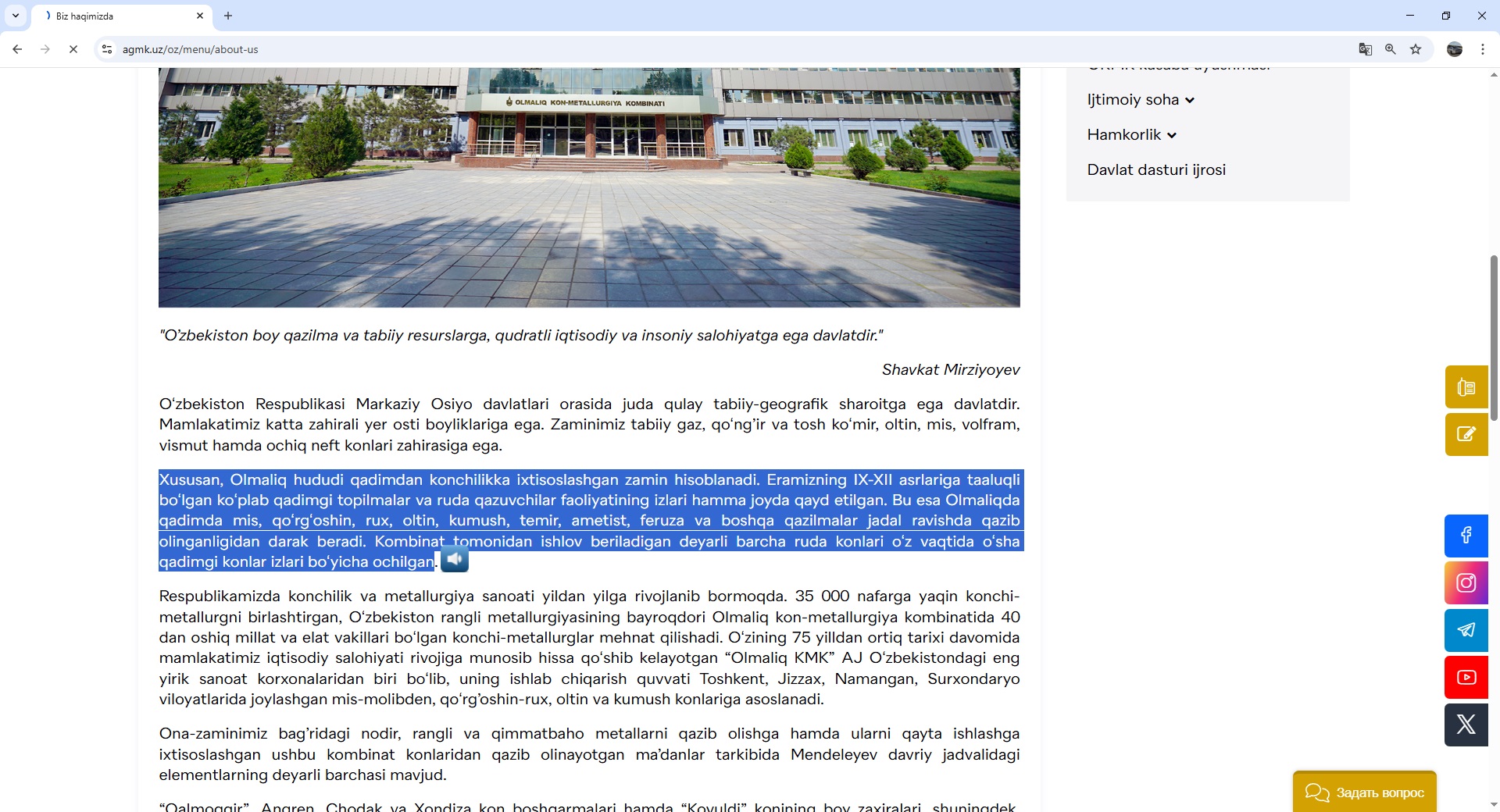 Rasmiy veb-saytning mobil versiyasi mavjudligi