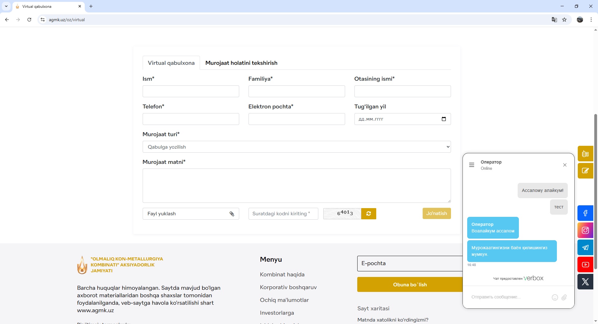 2) Rahbaruyatning aloqa uchun ma'lumotlari