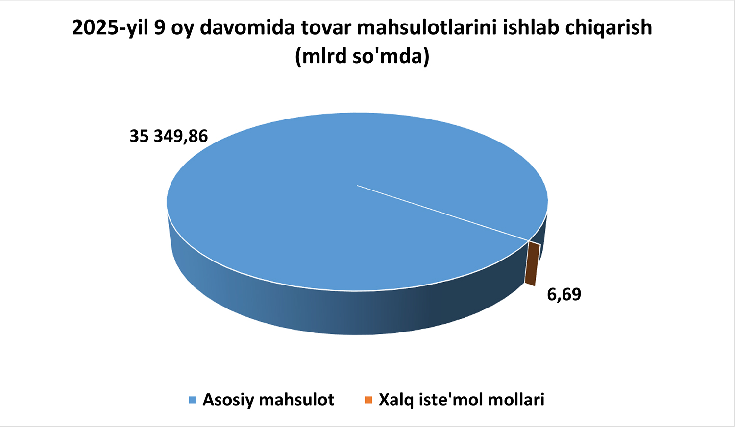 2025-yil 9 oy davomida tovar mahsulotlarini ishlab chiqarish Yuklab olish (Format - pdf, hajmi - 106 KB)