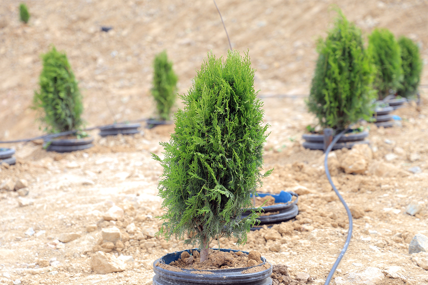 3-MBF xo‘jalik uchastkasi boshlig‘i Ixtiyor Do‘sovning aytishicha, ayni damda 3,5 gektar yer maydoniga 20 mingdan oshiq daraxt nihollari ekilayapti. Ularni sugʻorish uchun tomchilatib sug‘orish tizimi oʻrnatilmoqda.