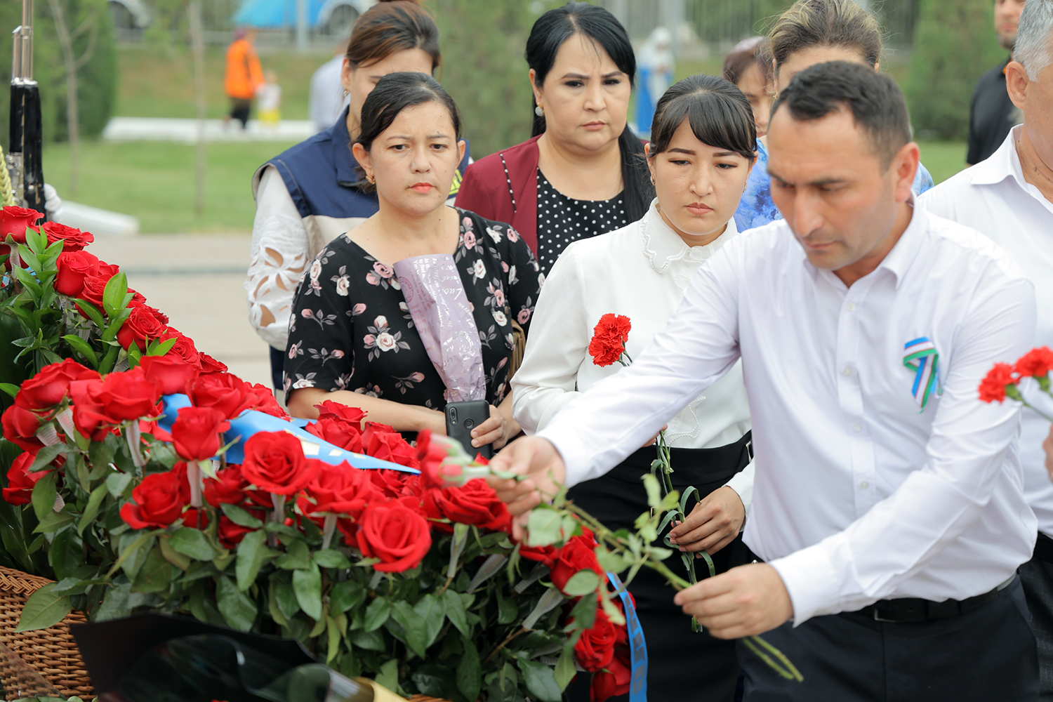 Tadbir ishtirokchilari mahzun musiqa sadolari ostida majmua poyiga gullar qo‘yib, o‘tganlar xotirasiga hurmat bajo keltirishdi.