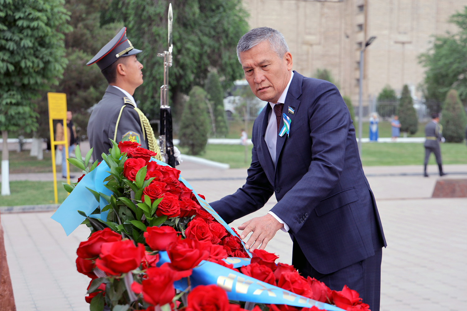 Xotira va qadrlash kuni munosabati bilan bugun Olmaliq kon-metallurgiya kombinati rahbariyati, Olmaliq shahar hokimligi mas'ullari, shahar korxona-tashkilotlari vakillari, harbiylar, huquqni muhofaza qilish idoralari xodimlari, nuroniylar shahrimizdagi “Motamsaro ona” yodgorligi oldida jam bo‘lishdi.