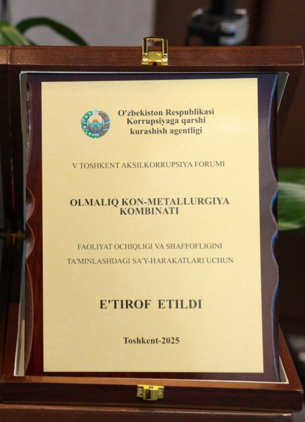 Hususan, "Olmaliq kon-metallurgiya kombinati" AJ “Faoliyat ochiqligi va shaffofligini ta’minlashdagi sa’y-harakatlari uchun” nominatsiyasi bilan mukofotlandi.