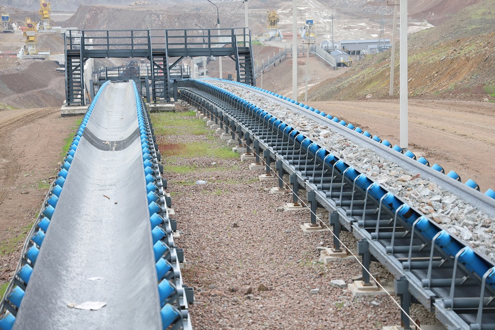 Mehmonlar “Yoshlik 1” koni hududida joylashgan Maydalash va qayta yuklash majmuasida ham bo‘lishib, u yerdan 3-Mis boyitish fabrikasining yirik maydalangan ruda omboriga yetkazib berilayotgan ma’danlarni tashish jarayonini kuzatishdi. Ma’lumot uchun Germaniyaning “Aumund” kompaniyasi tomonidan ishlab chiqarilgan 6 ta plastinali taminlagichlar yordamida tasmali konveyerlar orqali uzunligi 4200 metrni tashkil etuvchi FLSmidh kompaniyasida ishlab chiqarilgan 2 ta magistral konveyerlar orqali ma’dan tashiladi. O‘z navbatida, har biri 1500 kVt quvvatga ega bo‘lgan 4 dona, Germaniyaning ABB kompaniyasi elekrodvigatellari bilan jihozlangan ushbu konveyerlarning har ikkalasi, soatiga 6500 tonnadan ma’danni, sekundiga 4 m tezlikda, “Yoshlik 1” konidan 3-Mis boyitish fabrikasida joylashgan, umumiy sig‘imi 320 000 t.ga teng bo‘lgan yirik maydalangan ruda omboriga yetkazib beradi.