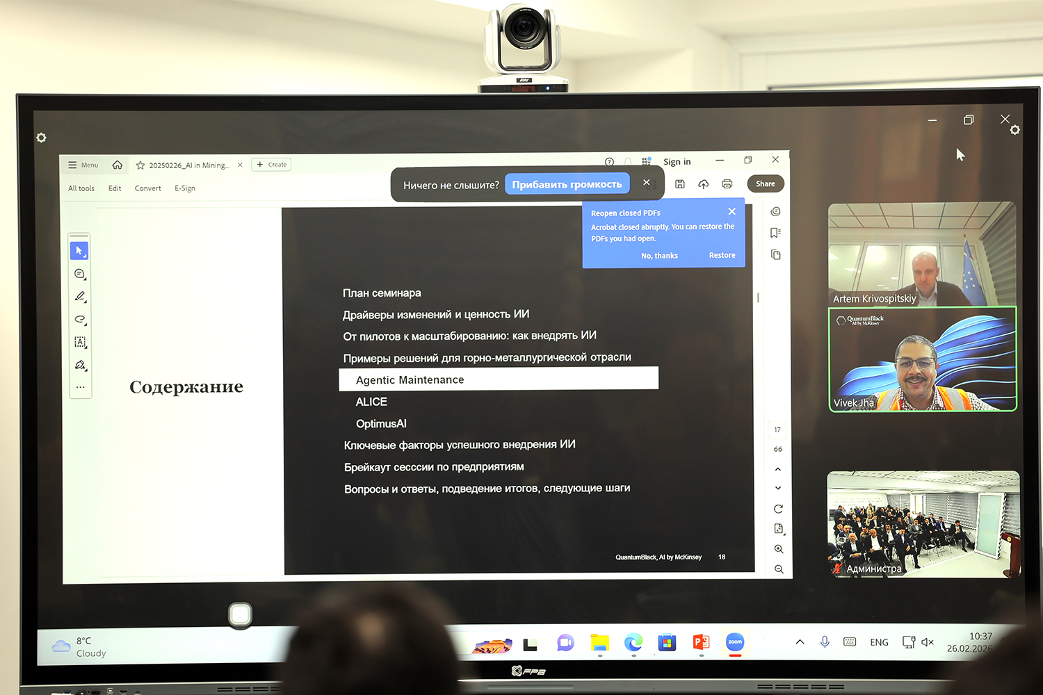 Shuningdek, McKinsey xalqaro konsalting kompaniyasi vakillari tomonidan “Kon-metallurgiya kompleksi uchun raqamli va sun’iy intellekt yechimlariga misollar”, “Sun’iy intellektni muvaffaqiyatli tatbiq etishning asosiy omillari” mavzularida taqdimot o‘tkazishdi.