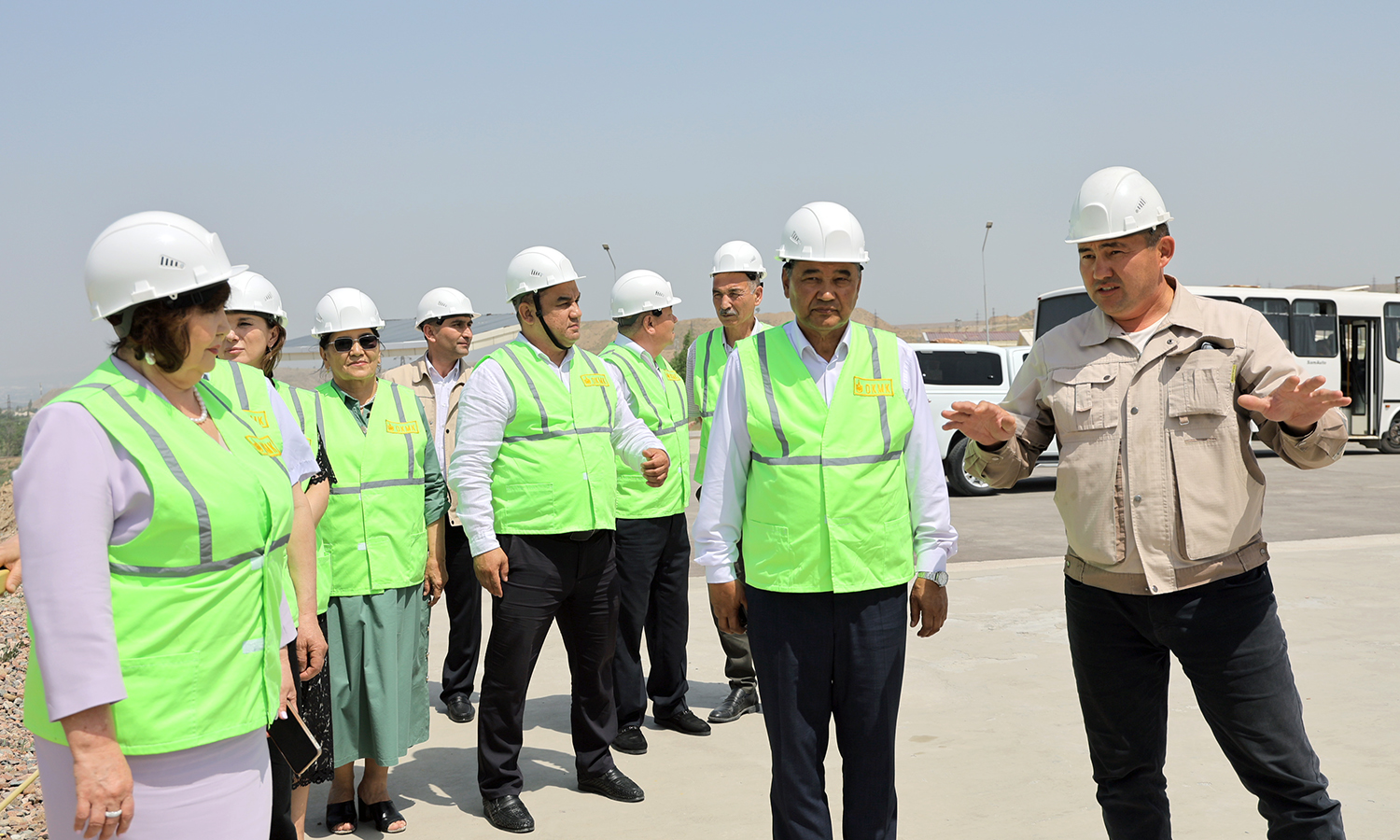 Keyingi manzil 3-Mis boyitish fabrikasi bo‘ldi. Mehmonlar fabrikaning qurilish jarayonlari va xodimlar uchun yaratiladigan mehnat sharoitlari, xavfsizlik texnologiyalarini integratsiya qilish rejalari haqida batafsil ma’lumotlar olishdi.