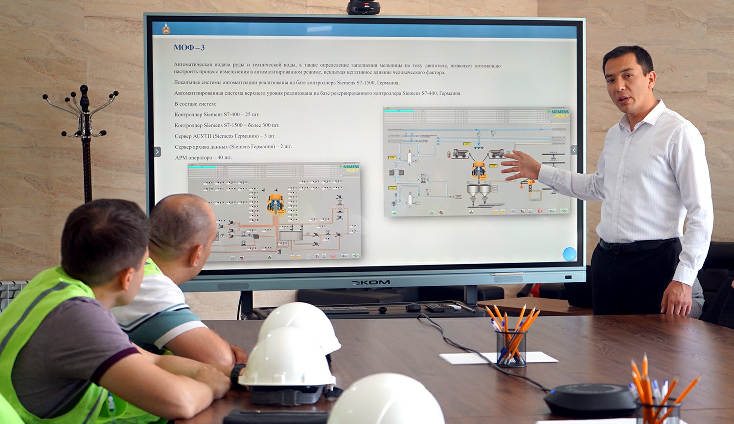 Dastlab, Olmaliq kon-metallurgiya kombinatida raqamli transformatsiya yo‘nalishida amalga oshirilgan ishlar yuzasidan loyihalar taqdimoti o‘tkazildi.