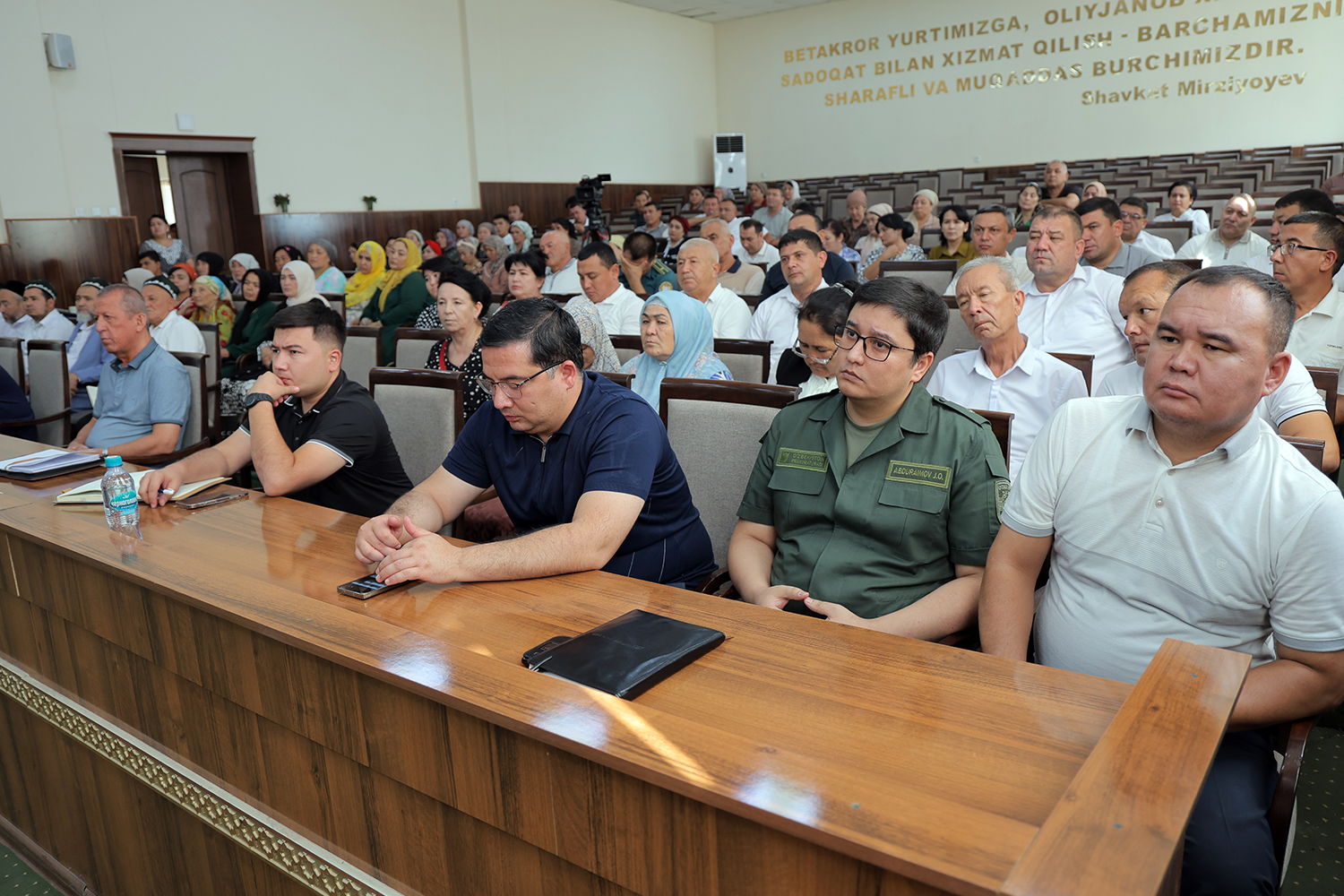 Во встрече приняли участие руководители АГМК и областного хокимията, представители Алмалыкской специализированной прокуратуры, управления по делам семьи и женщин, Комитета по делам религий, Министерства юстиции, Центра содействия занятости, банковских учреждений, центра «Инсон», управления здравоохранения, неправительственных организаций, Ассоциации махаллей, депутаты и активные представители общественности, а также руководители всех сфер Папского района.