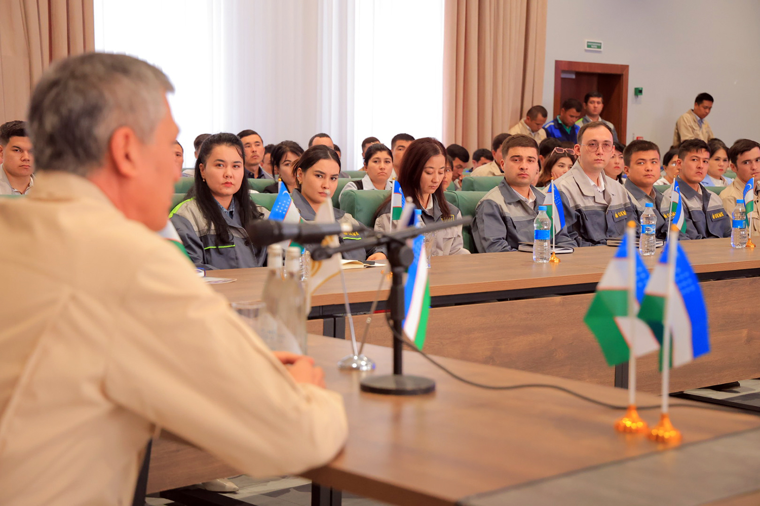 В ходе беседы - открытого и искреннего диалога, были заслушаны предложения и инициативы собравшихся, состоялся обмен мнениями, в котором были озвучены планы, предложения и интересы молодежи, ее видение перспектив и собственное место в них. В ходе мероприятия говорилось о внимании, уделяемом комбинатом молодым рабочим и специалистам, созданных условиях для того, чтобы они нашли достойное место в жизни. Сегодня на Алмалыкском горно-металлургическом комбинате трудоустроено 10 320 молодых людей. Из них 7 618 мужчин и 2 702 женщины. 1 489 человек (128 магистров) имеют высшее образование, 872 человека - руководящие и инженерно-технические работники. Комбинат сотрудничает с узбекскими и зарубежными высшими учебными заведениями. 180 молодых специалистов, окончивших высшие учебные заведения в рамках этого сотрудничества, в настоящее время работают на предприятиях комбината. Кроме того, 95 человек продолжают обучение. Из них 88 обучаются в высших учебных заведениях нашей страны, 7 - в зарубежных вузах.
