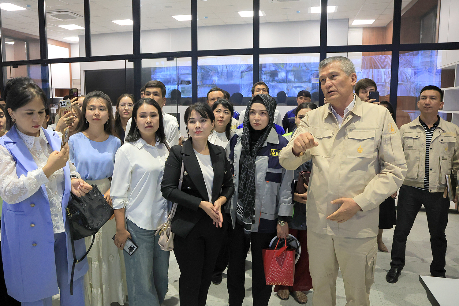 Так как встреча проводилась на самом актуальном на сегодняшний день производстве АГМК, молодежь комбината имела возможность подробно ознакомиться с его деятельностью из центральной диспетчерской службы медной обогатительной фабрики №3.