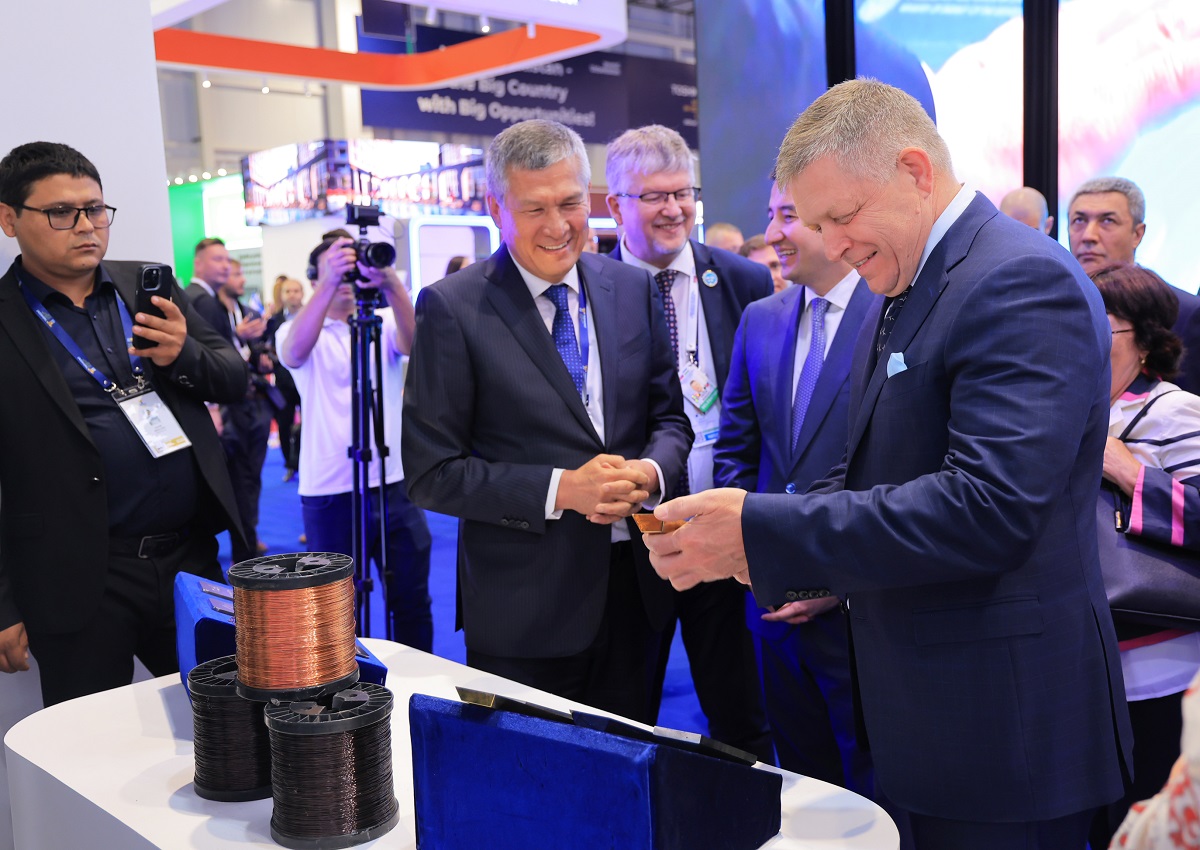 Стенд АГМК также посетила делегация во главе с Премьер-министром Словакии Робертом Фицо, находящимся в Узбекистане с официальным визитом. Делегация проявила большой интерес к деятельности предприятия.