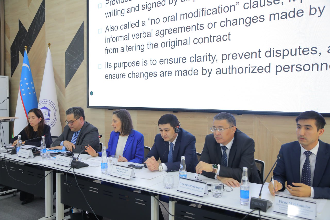 На заключительном мероприятии заместитель Министра юстиции Республики Узбекистан Ш. Рабиев вместе с ведущим экспертом фирмы White & Case LLP (США) Кэролин Ламм торжественно вручил участникам сертификаты.