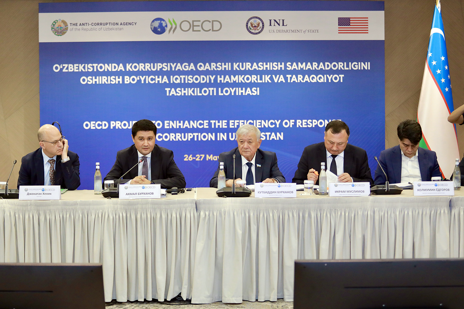 +998 71 619 23 3326-27 мая в гостинице в Ташкенте прошло мероприятие, посвящённое представлению базового отчёта пятого раунда мониторинга в рамках Стамбульского плана действий Антикоррупционной сети Организация экономического сотрудничества и развития (ОЭСР), а также презентации проекта «дорожной карты» по дальнейшему развитию антикоррупционных реформ в Узбекистане.