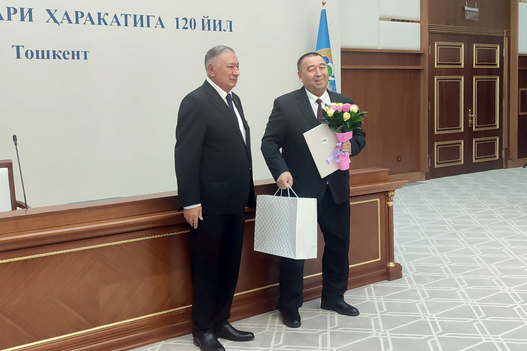 Также председатель профсоюзного комитета Ангренского рудоуправления Шерзод Ганиев был награждён знаком «Эҳтиром» и памятным нагрудным знаком «120 лет профсоюзам Узбекистана».