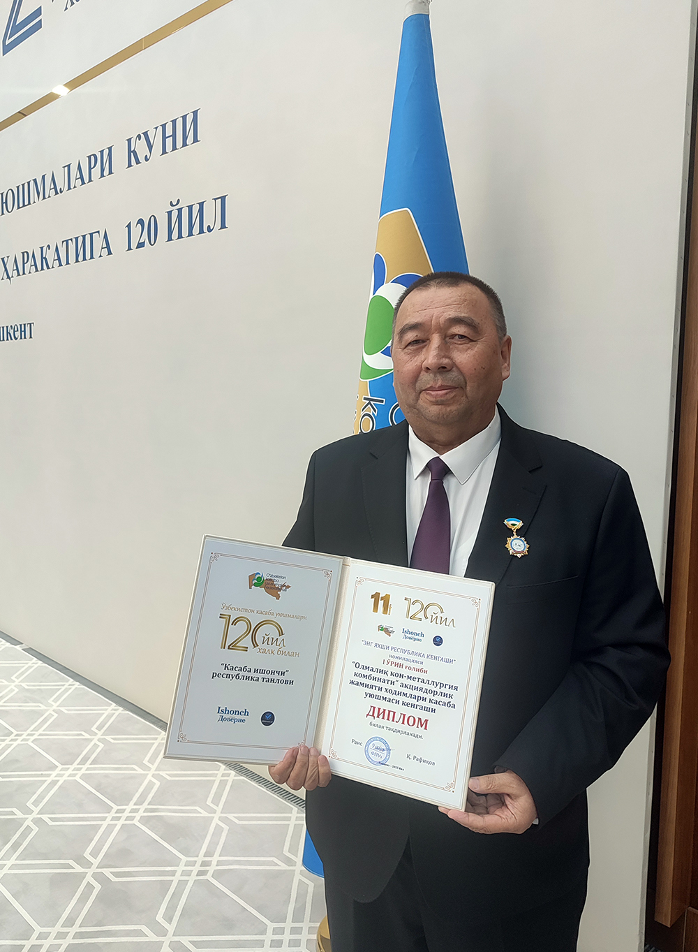 Примечательно, что среди награжденных – Совет профсоюза работников АО «Алмалыкский горно-металлургический комбинат», признанный победителем конкурса «Касаба ишончи» в номинации «Лучший республиканский совет».