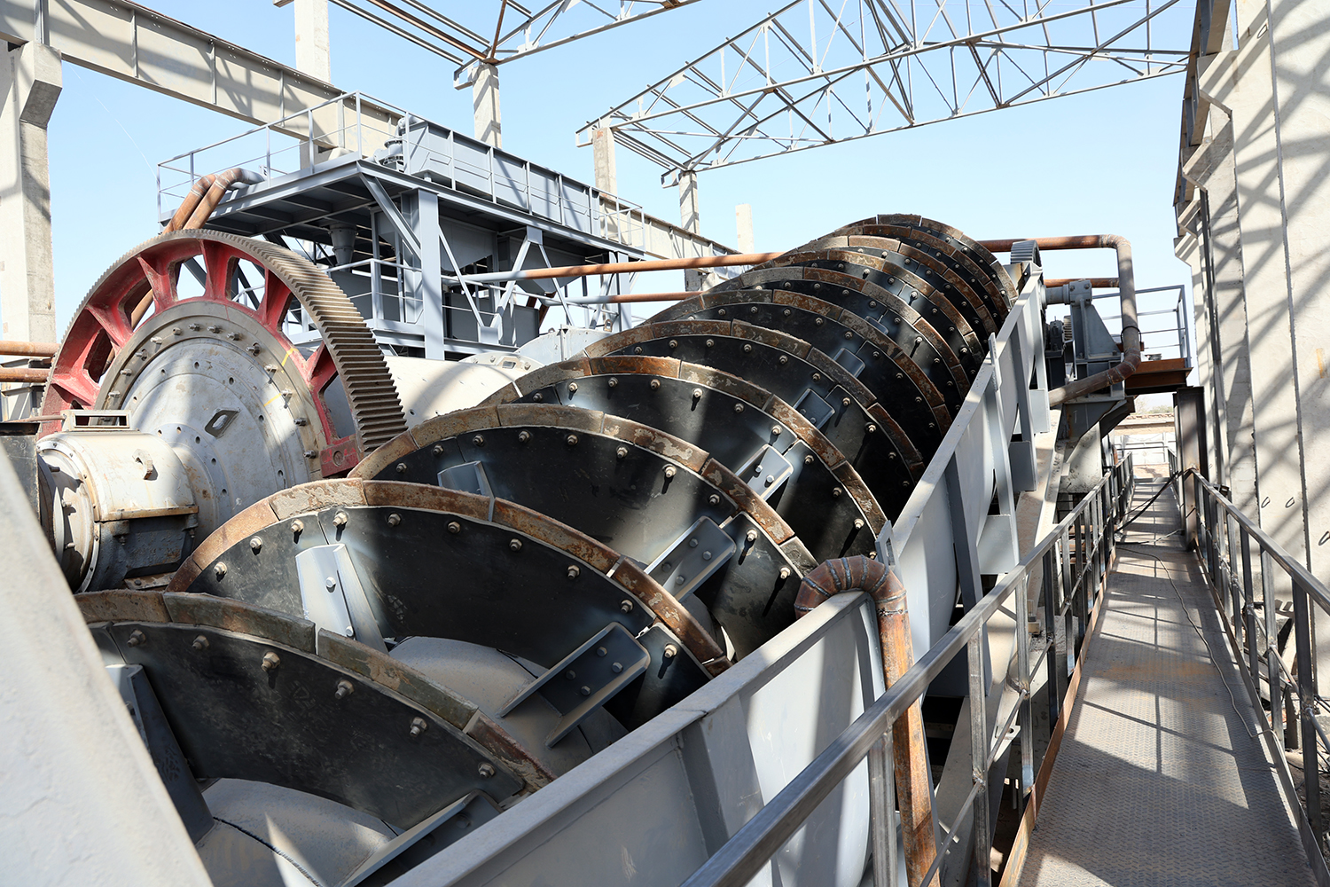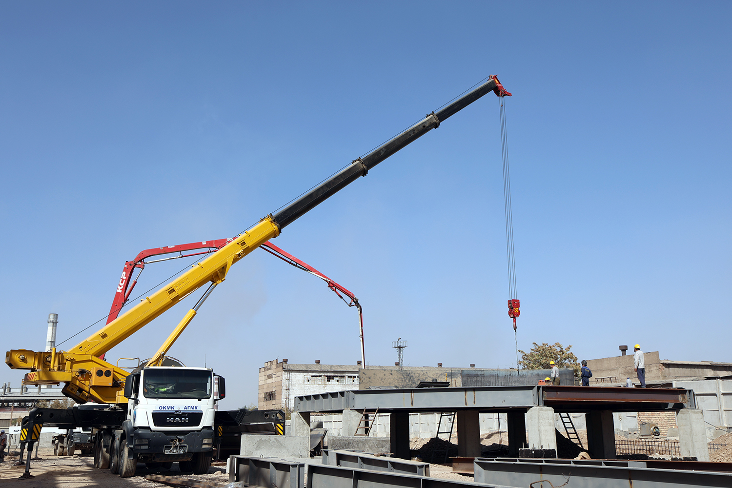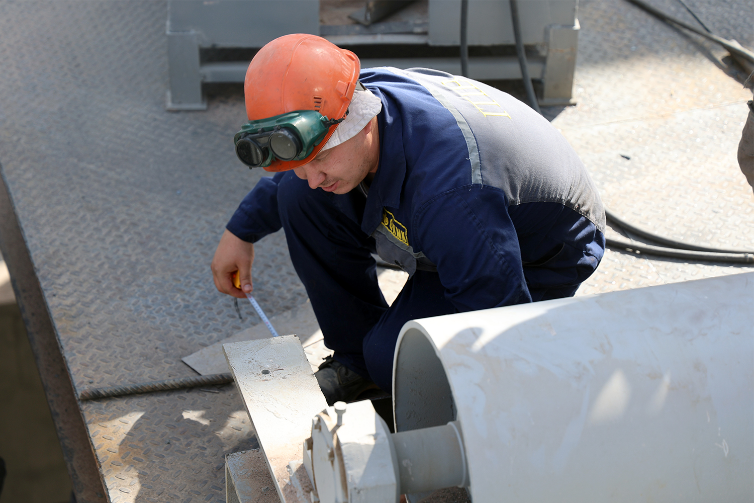 Строительные и монтажные работы выполняет трест «Олмаликметаллургкурилиш». По словам начальника производственно-технического отдела треста Дилором Асраевой, сейчас в административно-бытовом корпусе размером 25х15 метров ведутся отделочные работы. В производственном цехе полностью смонтированы фермы, монтаж вспомогательных колонн выполнен на 80%. Заливаются фундаменты под флотационные машины, идёт монтаж металлоконструкций и заливка оснований под пресс-фильтры.