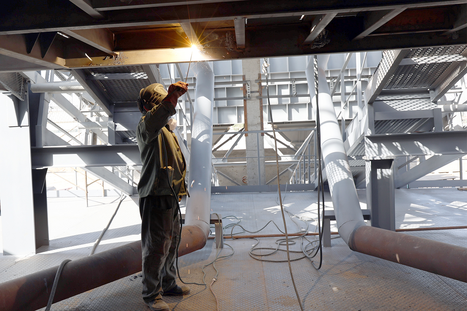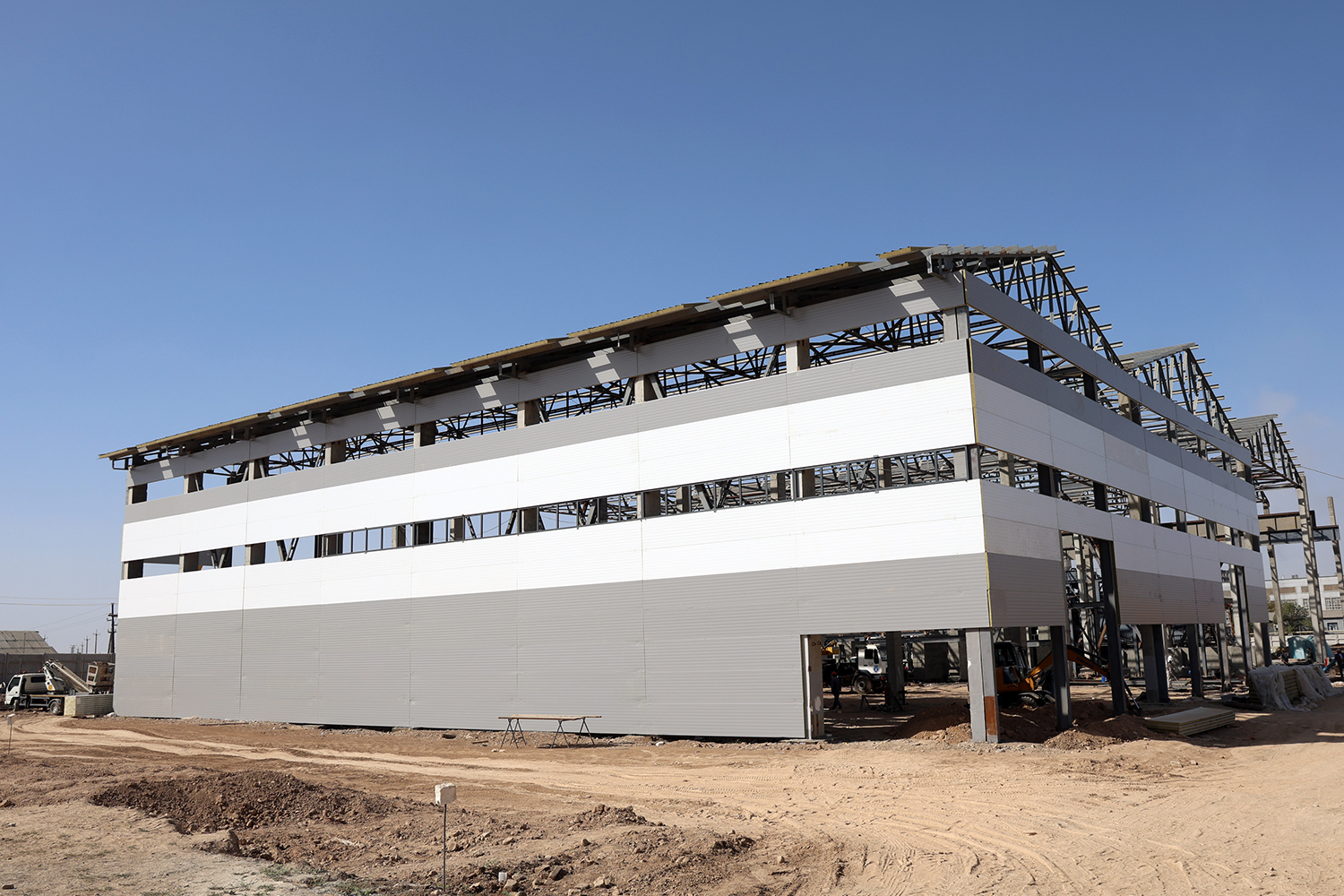 На зданиях и сооружениях фабрики планируется установить 7 000 квадратных метров сэндвич-панелей. На сегодняшний день смонтировано 1 000 квадратных метров. Также продолжается монтаж металлоконструкций для двух сгустителей. В целом объект готов уже на 45%.