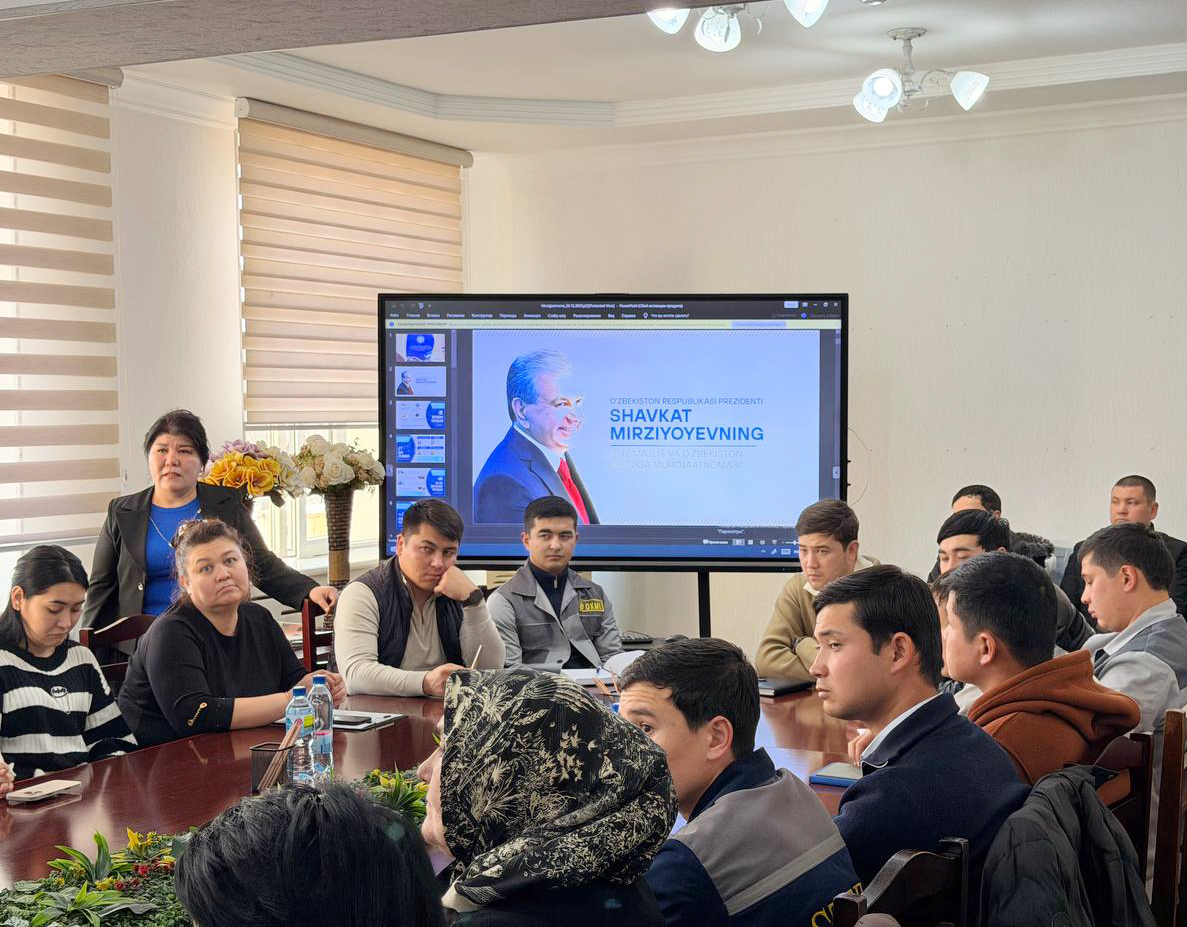 В ходе встречи с трудовым коллективом управления промышленного железнодорожного транспорта советник председателя правления АО «Алмалыкский ГМК» Камола Умаралиева, а также ветеран труда, директор благотворительного фонда «Соглом авлод учун» Мархамат Юлдошходжаева рассказали о сути, содержании и значении Послания Президента, адресованного Олий Мажлису и народу Узбекистана.