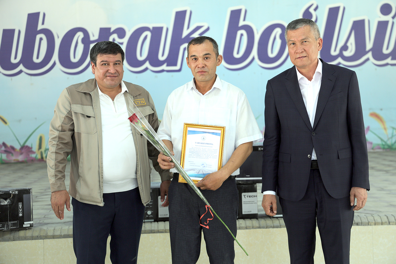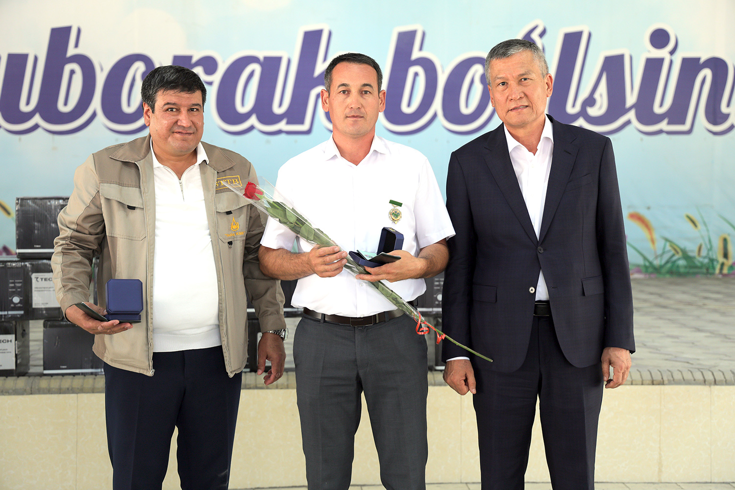 В рамках торжества состоялось вручение наград наиболее отличившимся работникам. За многолетнюю плодотворную работу мастер участка железнодорожного цеха №3 Улугбек Косимов был удостоен нагрудного знака II степени «Горняцкая слава». Главный энергетик Дилмурод Ражабов и начальник карьера нерудных строительных материалов Бахром Абдукаххаров получили нагрудные знаки «Горняцкая слава» III степени.