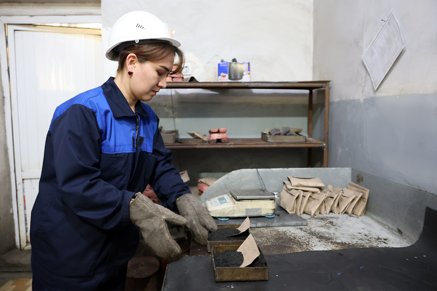Сегодня подробнее остановимся на работе подразделения СТК, действующего на медеплавильном заводе, который является завершающим звеном производственной цепочки комбината. Здесь специалисты службы отбирают пробы флюсовых руд, обогащённого концентрата и оборотных продуктов – пыли и кеков, поступающих на завод, Подготовленные образцы направляются в лаборатории для анализа содержания металлов в сырье и полуфабрикатах.