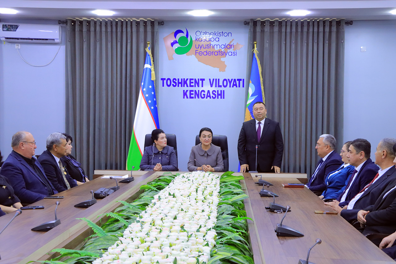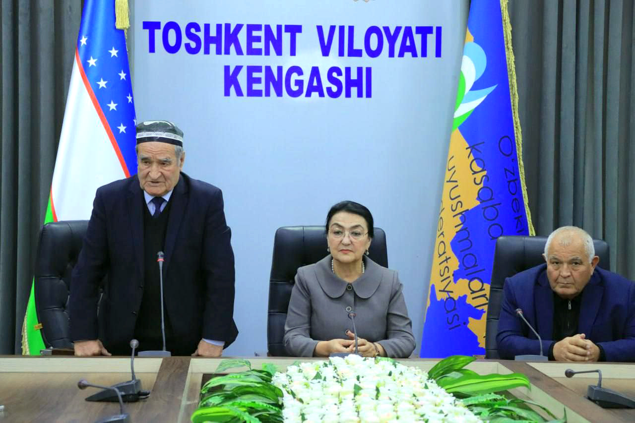 Одно из таких мероприятий состоялось 5 ноября по инициативе Ташкентского областного Совета Федерации профсоюзов Узбекистана. В торжественном собрании приняли участие председатель областного Совета Федерации профсоюзов С. Файзиева, заместитель хокима Ташкентской области – руководитель управления по делам семьи и женщин Н. Нормирзаева, председатель профсоюзного комитета АО «Алмалыкский ГМК» А. Хайдаров, глава областного отделения фонда «Нуроний» А. Носиров, руководитель областного отделения Союза журналистов Узбекистана Р. Шералиев, а также представители профсоюзных организаций и активисты.