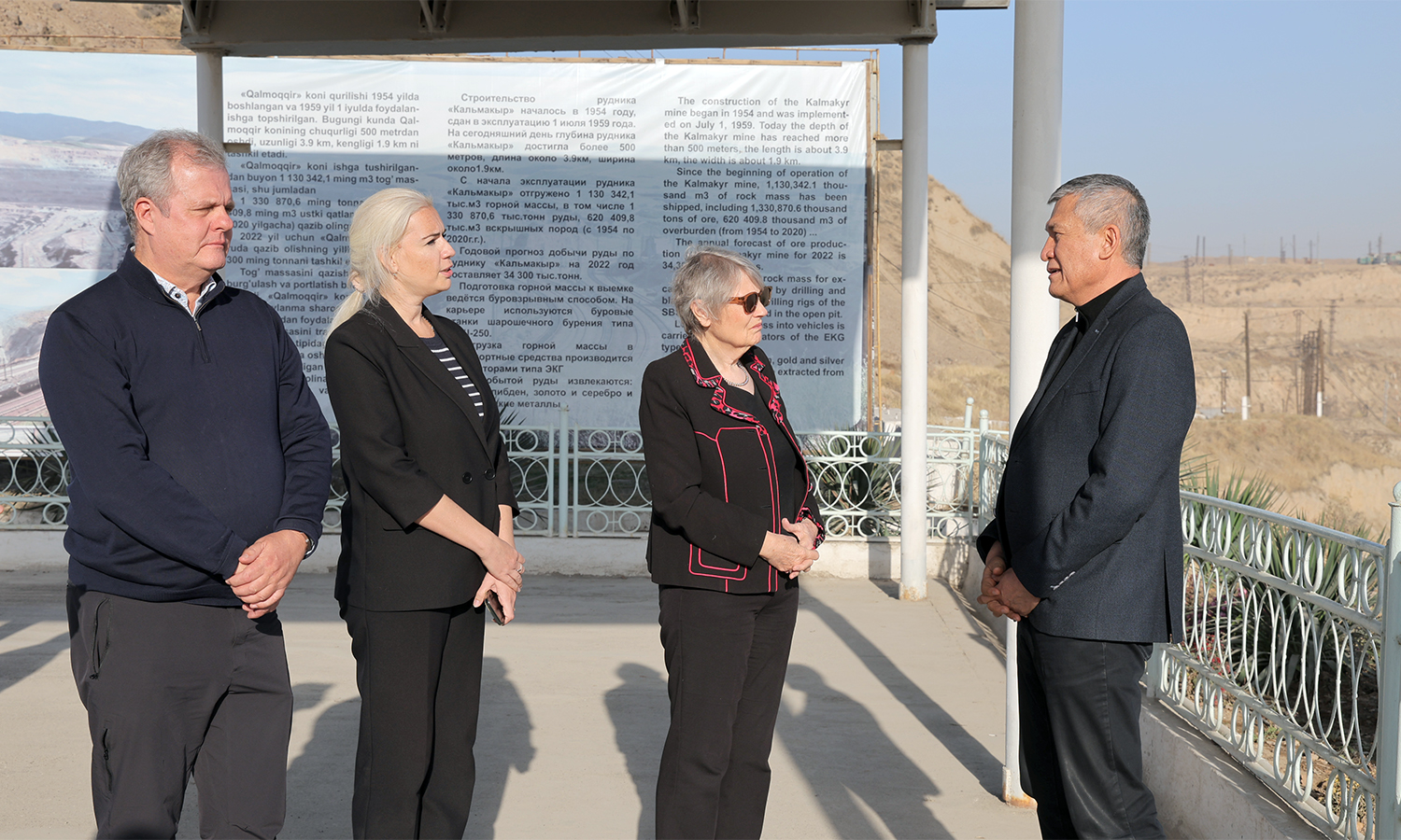 В сопровождении председателя правления АО «Алмалыкский ГМК» Абдуллы Хурсанова делегация осмотрела технологические процессы на одном из крупнейших месторождений мира – руднике «Кальмакыр». Особое впечатление на гостей произвёл новый рудник «Ёшлик I», который осваивается в рамках инвестиционного мегапроекта.