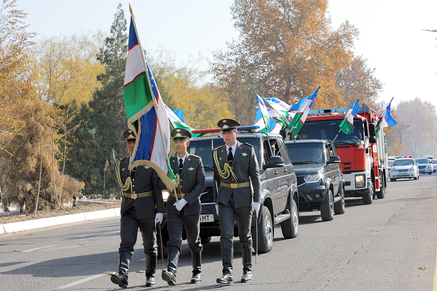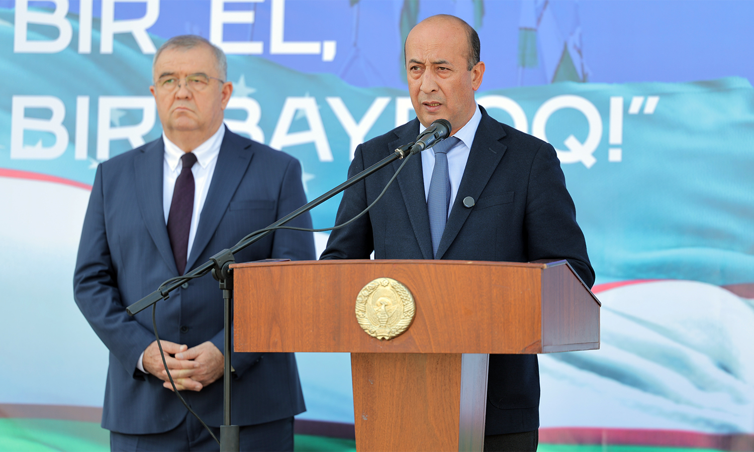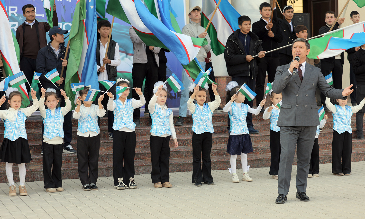 Церемония началась с того, что Почётный караул торжественно внёс Государственный флаг Республики Узбекистан. С приветственным словом выступили хоким города Алмалыка Кобил Хамдамов и заместитель председателя правления АО «Алмалыкский горно-металлургический комбинат» по персоналу и социальным вопросам Саъди Шерматов. Они подчеркнули, что среди символов суверенитета нашей страны Государственный флаг занимает особое место, являясь олицетворением истории и современности народа, его независимости, мира и стабильности. Руководители тепло поздравили всех участников с этим знаменательным днём.