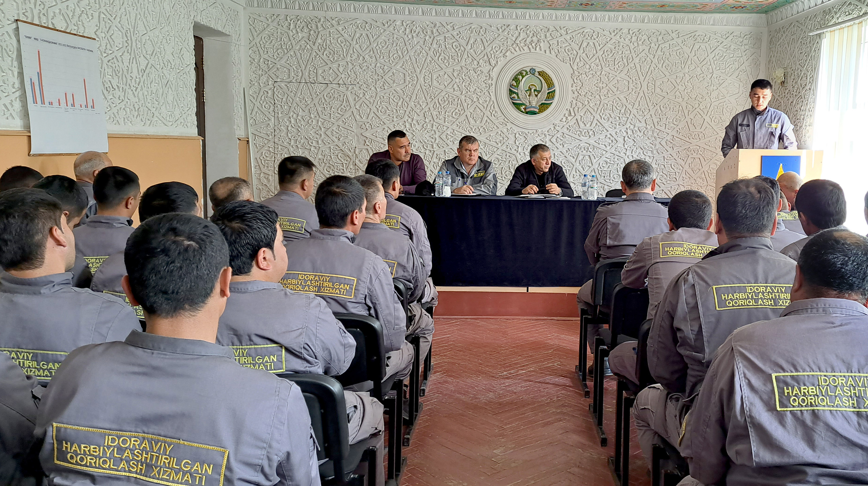 Unda xizmat boshlig‘ining huquqiy masalalar va shaxsiy tarkib bilan ishlash bo‘yicha o‘rinbosari A.Boboxo‘jayev, kasaba uyushmasi qo‘mitasi raisi B.Rasulov, qorovul boshliqlari, 5-komanda shaxsiy tarkibi ishtirok etishdi.