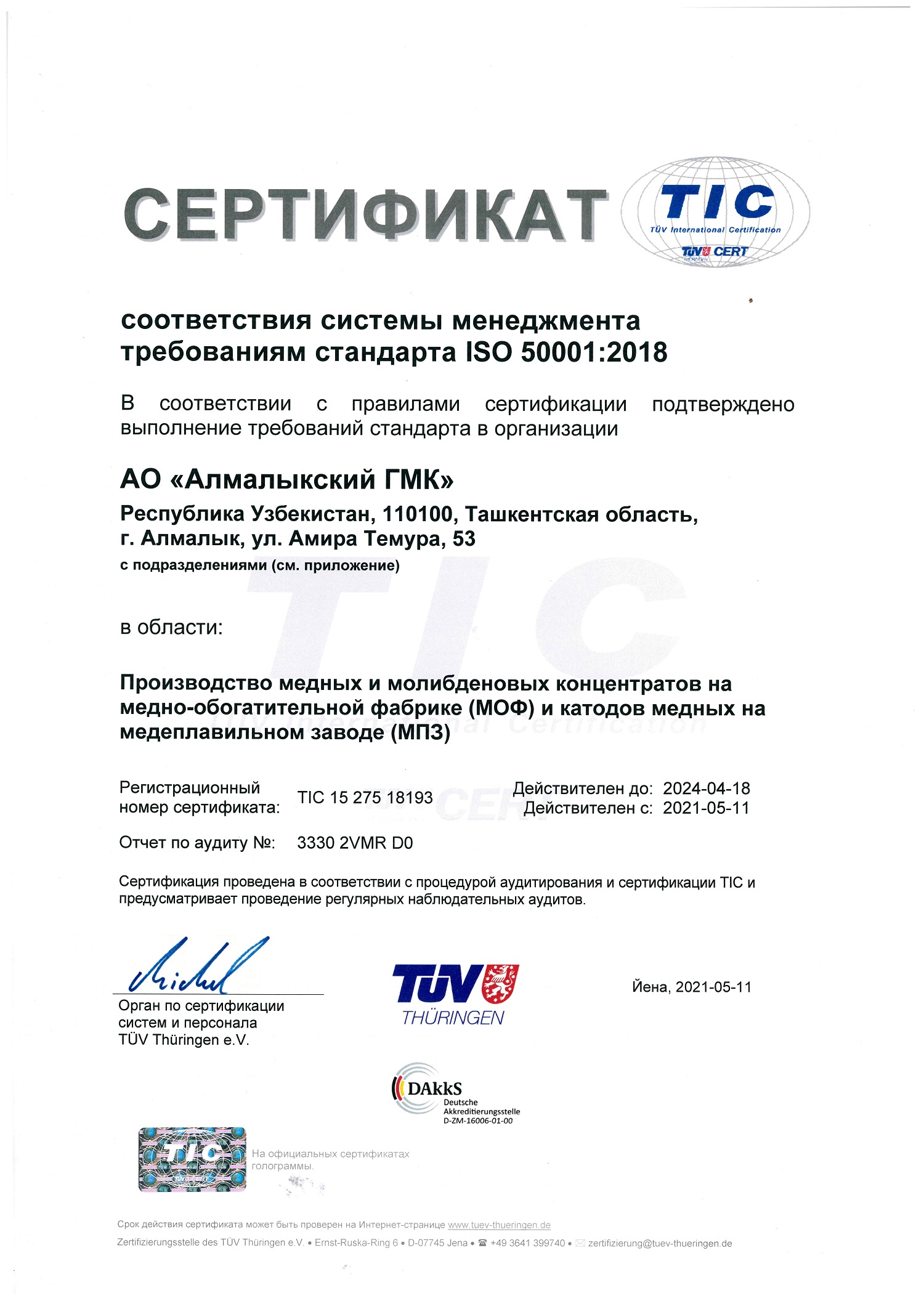 Являясь энергоёмким предприятием, АО «Алмалыкский ГМК» стремится повысить энергетический эффективность предприятия, путем рационального использования энергетических ресурсов, постоянного совершенствования технологических процессов, внедрения энергосберегающих технологий, сокращения удельных норм расхода энергетических ресурсов.