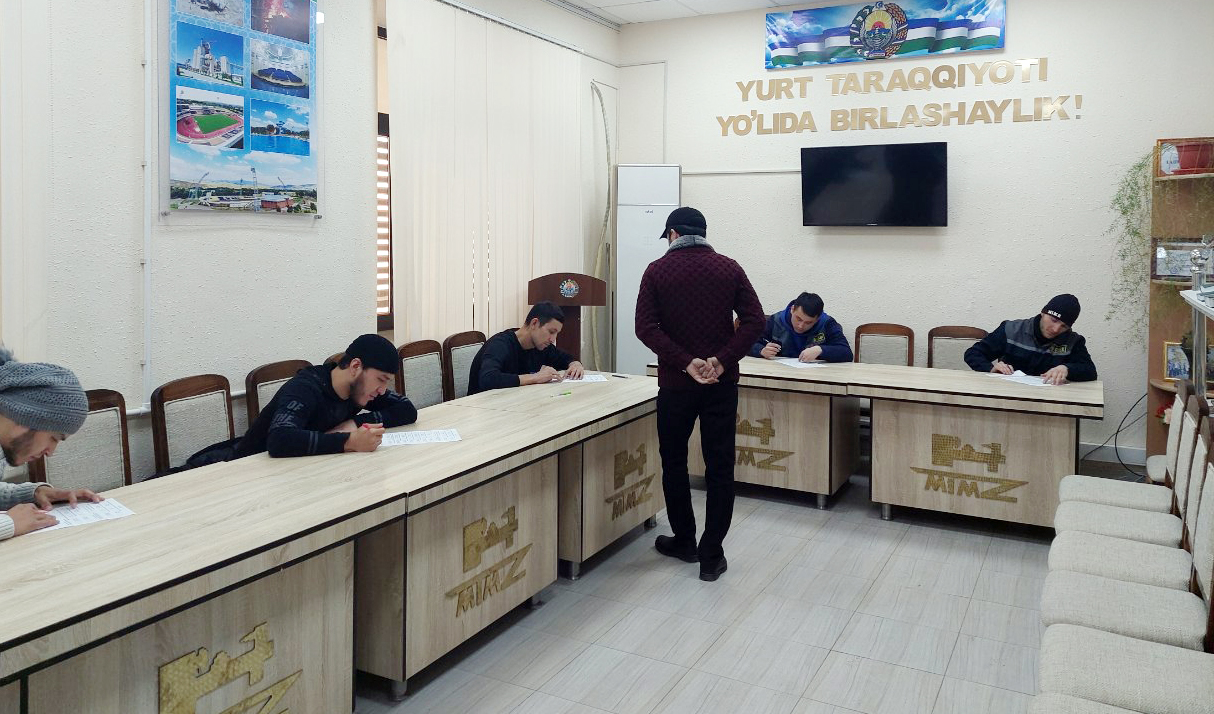В конкурсе приняли участие 5 молодых работников из различных цехов и участков завода: Дильшод Усмонкулов (представитель цеха по ремонту автотранспорта и спецтехники), Хусан Усмонкулов (работник ремонтно-механического участка), Санжарбек Отабоев (специалист кузнечно-сварочного цеха), Хондамир Бадриддинов (литейный цех) и Сарвар Акмалов (механо-сборочный цех).
