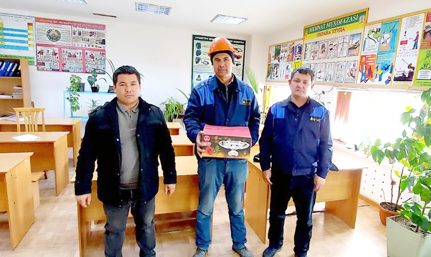 По итогам конкурса «Лучший уполномоченный по охране труда», в котором от участников требовалось письменно ответить на 10 вопросов, больше всех баллов набрал контролёр службы технического контроля рудоуправления Ш. Хусанов. Победителю вручили ценный подарок от профкома.